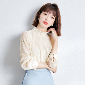 2021春装新款超仙气质宽松长袖雪纺衫女法式时尚百...