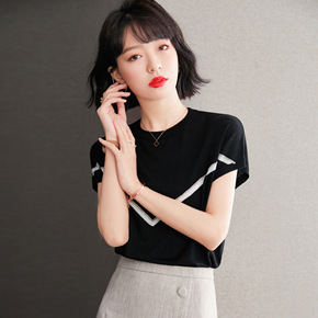 短袖套头时尚百搭冰丝针织衫2021夏季薄款透气宽松...