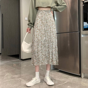 温柔风碎花半身裙女夏季2021新款韩版高腰中长款雪...