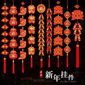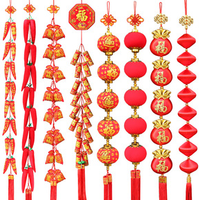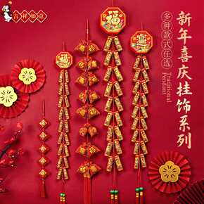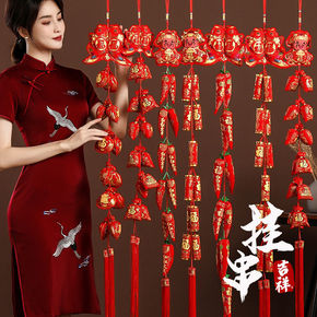 新年装饰品批发春节乔迁新居入宅鞭炮挂件客厅喜庆红辣...