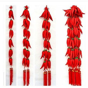 新年装饰小红辣椒挂件一串18头仿真大红辣椒房间门墙...