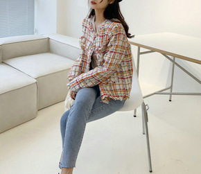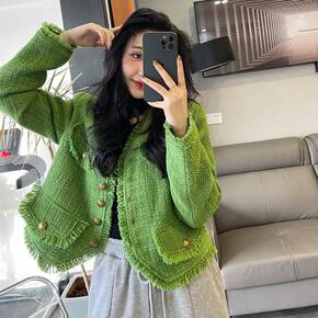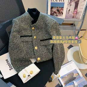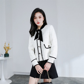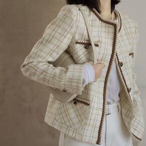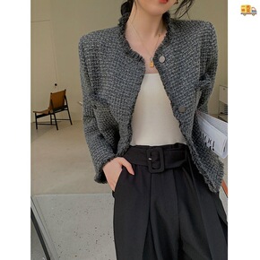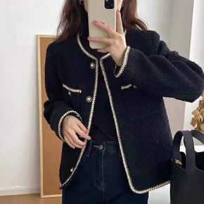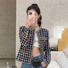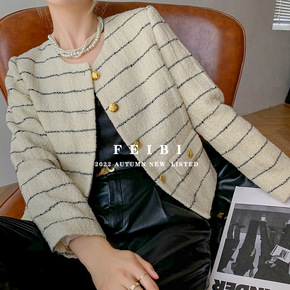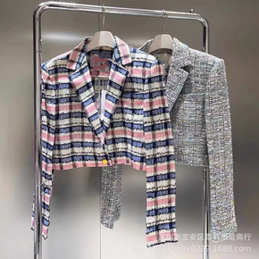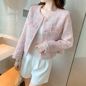 2021秋季新款韩版小香风外套女粗花呢小个子气质短...