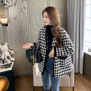 2022加大码胖春秋季新款小香风短款外套女粗花呢修...