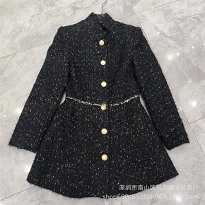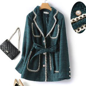 毛呢外套女2022秋冬新款时尚小香风粗花呢翻领收腰...