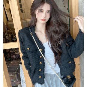 法式小香风粗花呢外套女2022秋季新款黑色气质名媛...