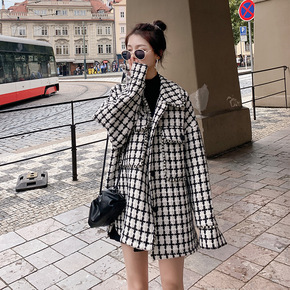 网图韩国女装外套粗毛呢2020秋冬新款韩版格子短裙...