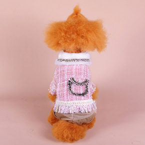小香风狗狗裙子博美猫咪公主棉裙泰迪衣服秋冬装宠物小...