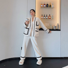 珊瑚绒睡衣女网红款小香风加厚甜美可爱法兰绒家居服两...