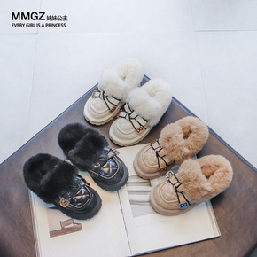 儿童毛毛鞋2021冬季新款女童加绒加厚小香风棉鞋中...