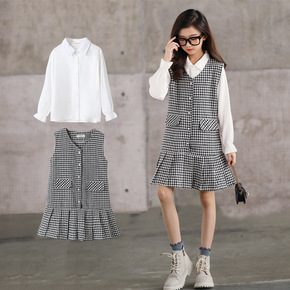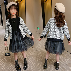 女童套装裙子小香风春秋新款中大童女装千鸟格韩国童装...