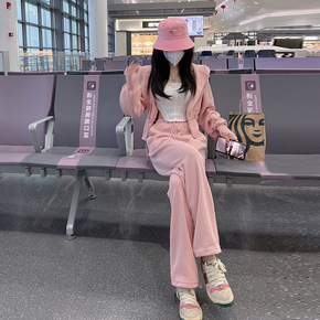 2022春高级感网红炸街粉色休闲运动卫衣套装女小个...