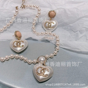 2021年秋冬新款双C香家小香风爱心珍珠项链欧美香...