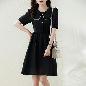 2022黑色小香中腰开衫纯色气质通勤短裙棉官方图片...