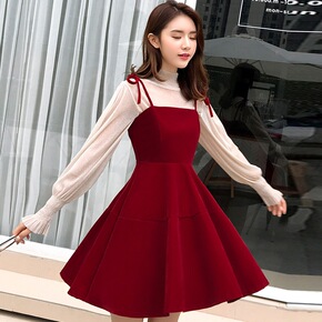 两件套装2021新款早春秋小香风小个裙子吊带气质红...
