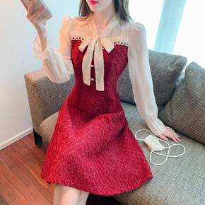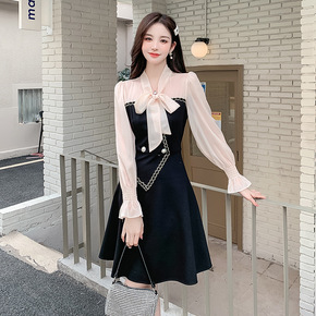 2022春装新品小香风通勤气质名媛减龄拼接假两件连...