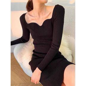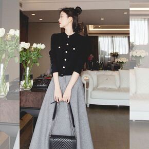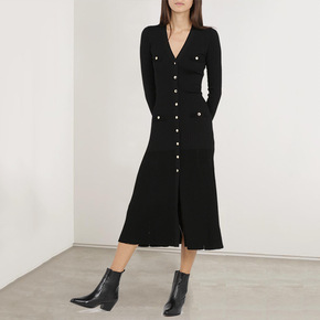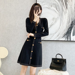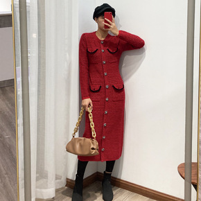 S家法国赫本风针织鱼尾连衣裙20秋冬小香风高腰显瘦...