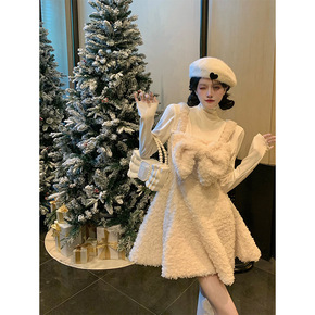 温柔小香风减龄加厚毛呢连衣裙子2021年秋冬新款小...