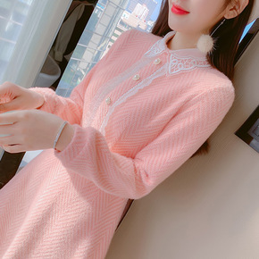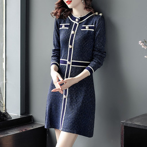 小香风毛衣裙长款外穿毛衣裙过膝2021秋装新款高领...