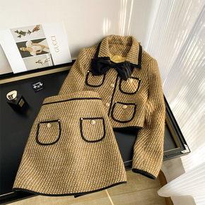 小香风时尚套装女秋冬季2021年新款甜美短外套百褶...