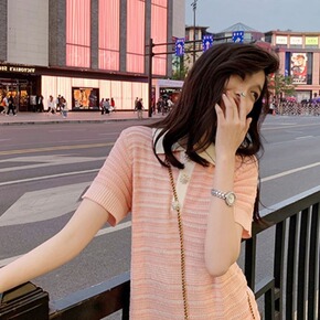 韩国女装2021新款法式小香风polo冰丝针织连衣...