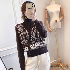 小香风毛衣女复古风假两件毛衣女堆堆领2021秋冬加...
