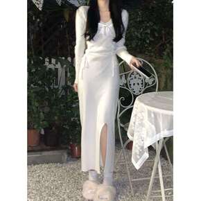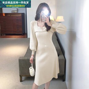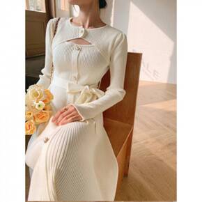 针织裙秋装2021年冬新款小心机修身显瘦气质镂空系...