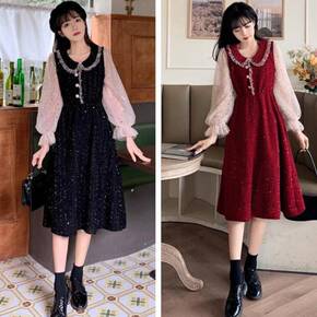 大码女装秋装新款秋季大码胖收腰显瘦高级感裙子法式气...