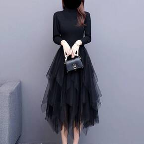 年会大码女装秋冬遮肚子网纱拼接仙女长裙胖妹妹亮闪闪...