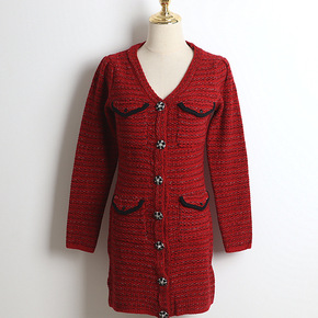 法单S家2021秋冬新款女 法式小香风排扣修身针织...