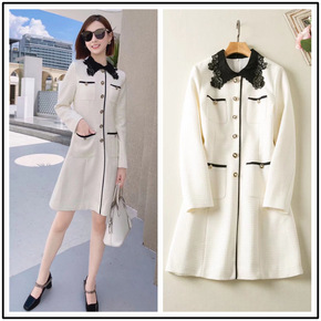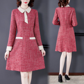 2021年秋季新款气质减龄中长款小个子娃娃领小香风...