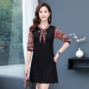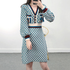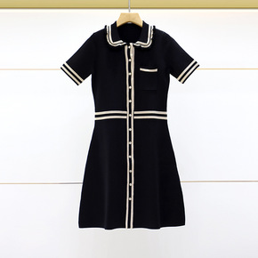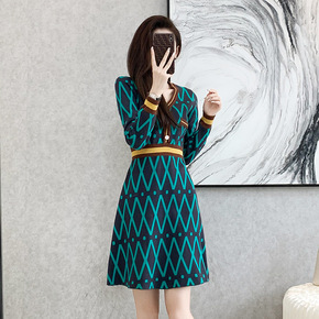 女装2021秋季新款大码针织连衣裙女小香风长袖格纹...