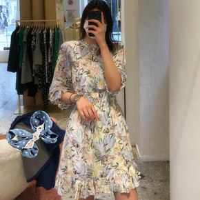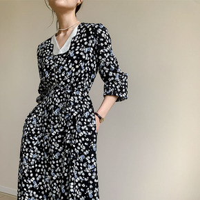 法单M家 21春夏新款法式小香风碎花甜美七分灯笼袖...