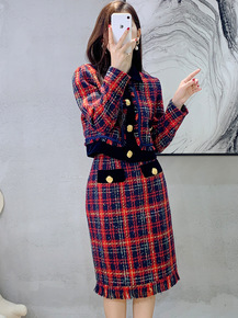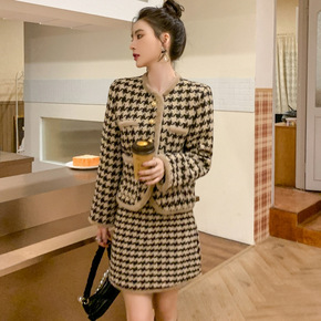 2021秋冬新款小香风两件套装女 韩版毛呢小个子秋...