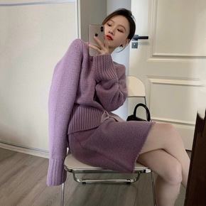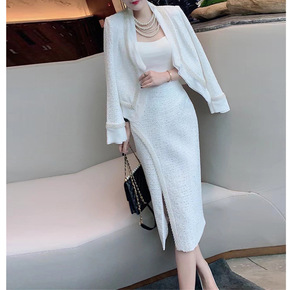 21668小香风名媛洋气高级感休闲针织毛衣裙子两件...
