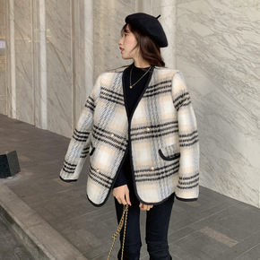 【不退不换】韩版包扣双面呢小香风冬季外套女2021...