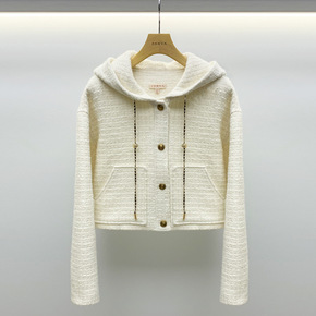2022春季新款女装粗花呢连帽单排金属扣小香风气质...