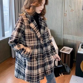 2021秋装新品单排扣圆领休闲小香风千鸟格气质短外...