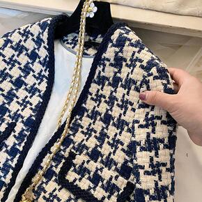 法单2020秋冬新款 小香风粗花呢V领无袖女装上衣...