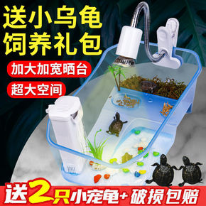 乌龟缸带晒台塑料水陆缸带盖养龟专用缸家用盒子小号别...