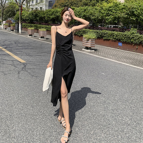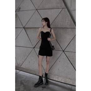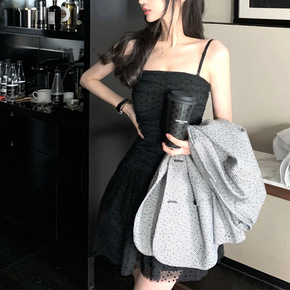 2022年新款吊带裙设计感小众辣妹穿搭气质小黑裙法...