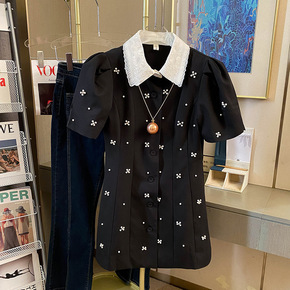 实拍黑色连衣裙夏新款娃娃领A字小黑裙泡泡袖赫本风气...