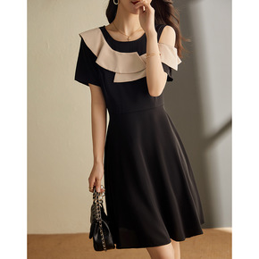 2022年夏季女新款感荷叶边裙子法式气质小黑裙露肩...
