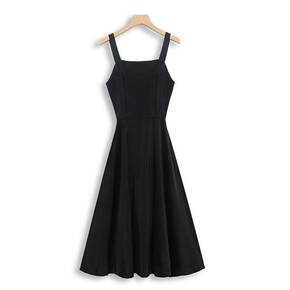 黑色吊带连衣裙2022夏季新款赫本风小黑裙收腰显瘦...