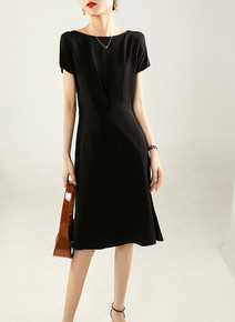 【赫本风小黑裙】醋酸弹力麻高腰中长款泡泡袖连衣裙女...