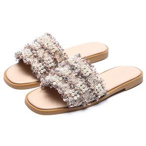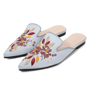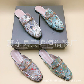 2020新款小ck古典刺绣宫廷花卉平底凉鞋穆勒懒人...