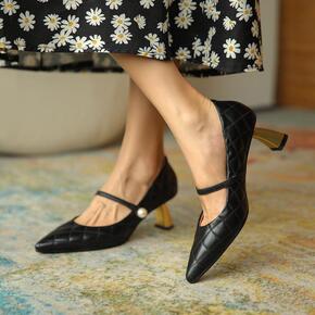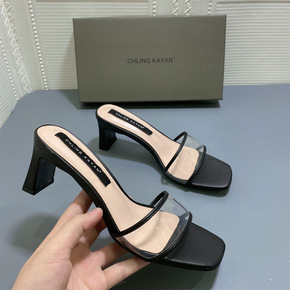 2020年小CK鞋夏新款女单鞋方头舒息粗跟中跟鞋女...