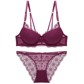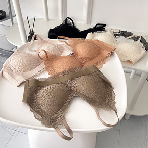 新款红妆秋冬性感蕾丝文胸套装少女平胸小胸聚拢无钢圈...