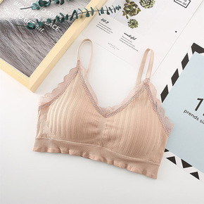 原版夕雾婴儿棉无钢圈中厚款蕾丝文胸性感深v舒适聚拢...