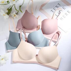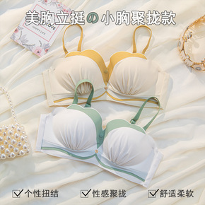光面幻彩简约内衣女士一片式无痕撞色拼接小胸聚拢无钢...