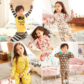 男童舒棉加厚睡衣儿童秋衣秋裤纯棉套装女童保暖内衣打...